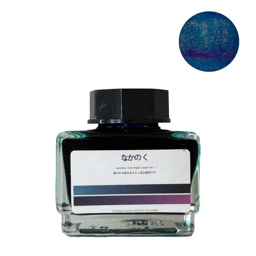 new Ka-Ku Ink Mazeru / Aquarium Hidden in the Stars (Shimmer) - 18ml fountain pen ink in a glass bottle, featuring deep blue with pink shimmer.
