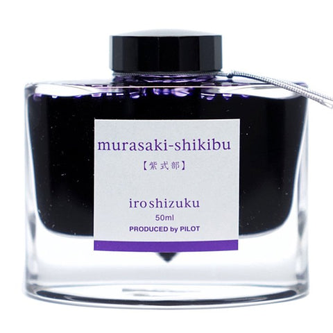 Iroshizuku Ink - Murasaki Shikibu (50ml) in a 50 ml glass bottle, showcasing the elegant design typical of Pilot's fountain-pen ink collection.