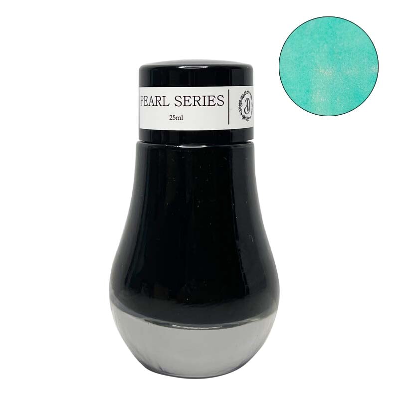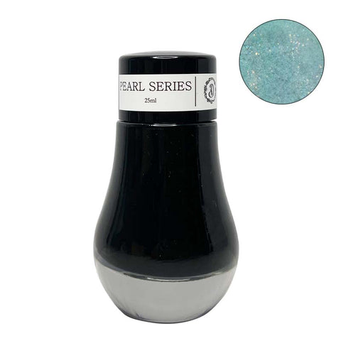 Dominant Industry Goryeo Celadon (Shimmer) fountain pen ink, 25ml jar, features sparkly aqua-turquoise pearlescent powder, perfect for vibrant, shimmering writing.