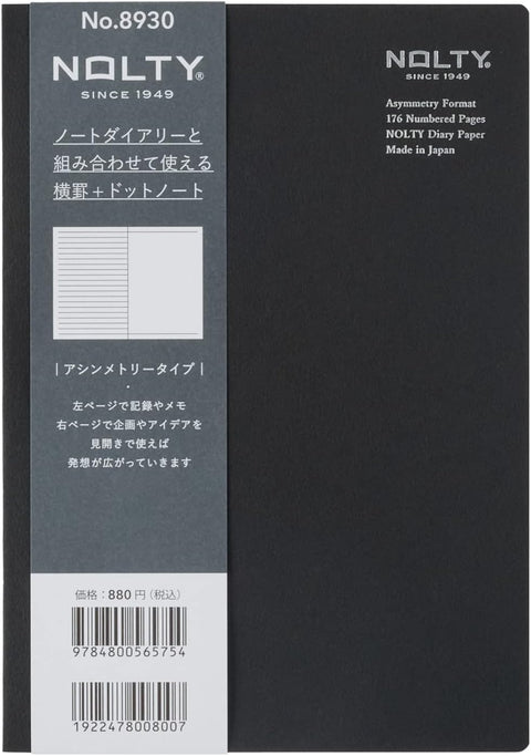 Asymmetry Numbered Tio Notebook Refill - Ruled/Dotgrid (Black, A5)