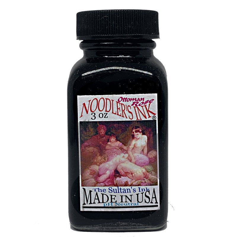 3-ounce bottle of Noodler’s Ottoman Rose - 88ml, a pH-neutral, dye-based fountain pen ink, known for varied performance and vibrant colors. Sold Out