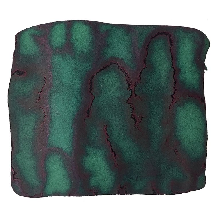 new Fanyantan's Tranquil Bamboo Grove fountain pen ink features a deep teal-green with a subtle reddish-burgundy wash, embodying solitude and tranquility in a 2ml sample.