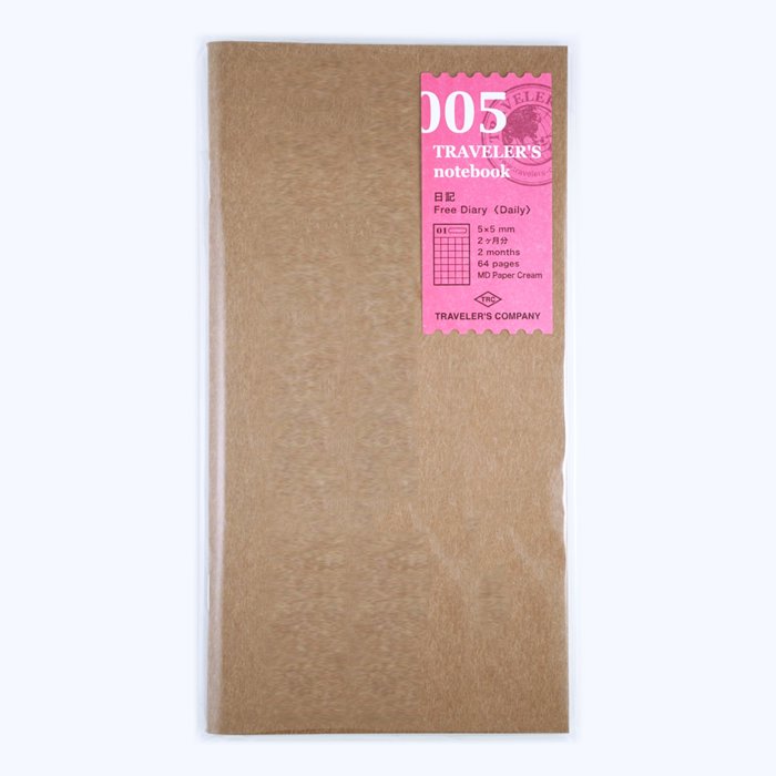 Traveler's Company #005 Undated Diary (Daily) - Regular: Slim kraft cover, 64 cream-colored gridded pages, fits Traveler’s Notebook, designed for customizable two-month daily planning.