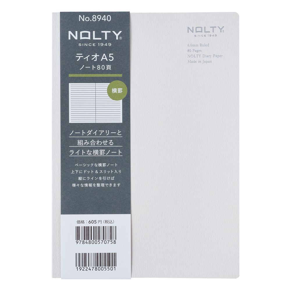 Nolty Tio Notebook Refill - Ruled (Grey, A5)