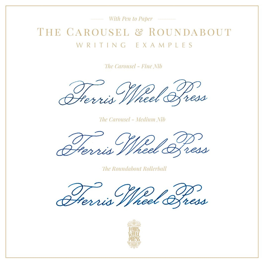 The Carousel is a joyous writing instrument that combines tactility and nostalgia in a lightweight body to create a charming experience with every single detail. The custom-ground steel nib is playful and agile, producing beautifully nuanced lines with its subtle flexibility. Available in both fine and medium weights, this nib is stamped with a galloping horse that dances to your every word.