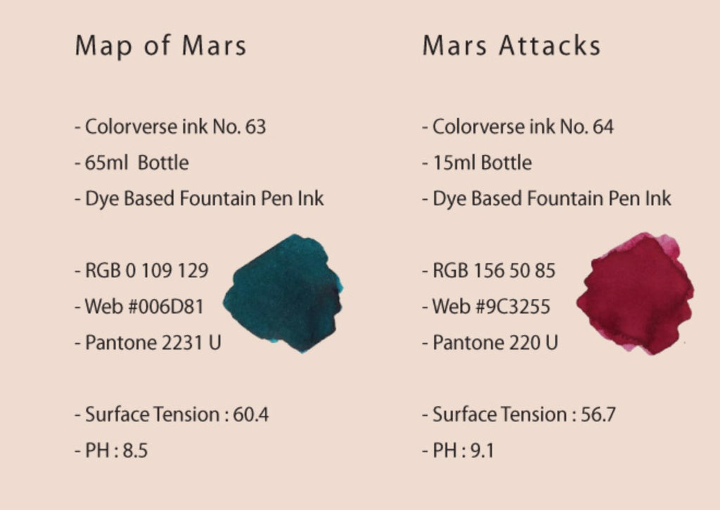 Colorverse Ink Sample – Map of Mars & Mars Attacks - 2ml Each Set