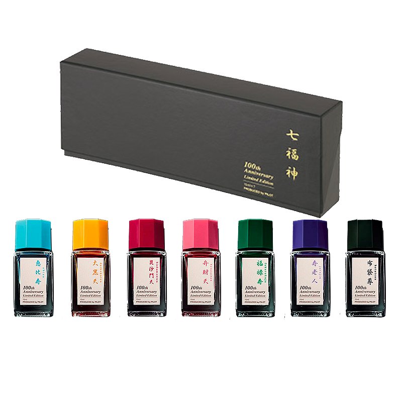 Each of these limited edition bottled color inks has been carefully created to evoke the character of its corresponding god of good fortune, be that Ebisu, Daikoku-ten, Bishamon-ten, Benzai-ten, Fuku-roku-ju, Juro-jin or Hotei-son.
