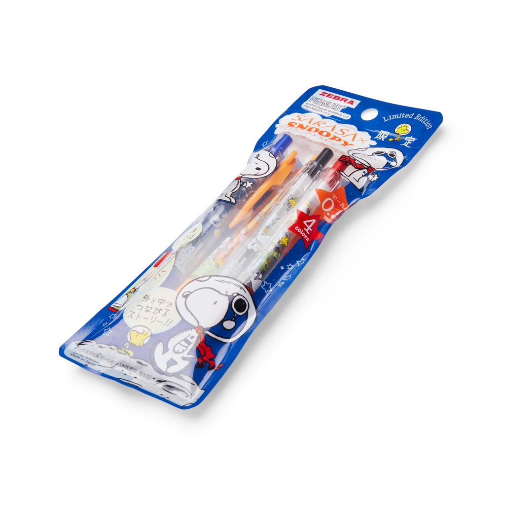 A special edition Snoopy set of 4 coloured pens by Zebra. Each pen carries the range's signature rubber grip, but now also has Snoopy patterned refills that can be seen through the clear barrel!